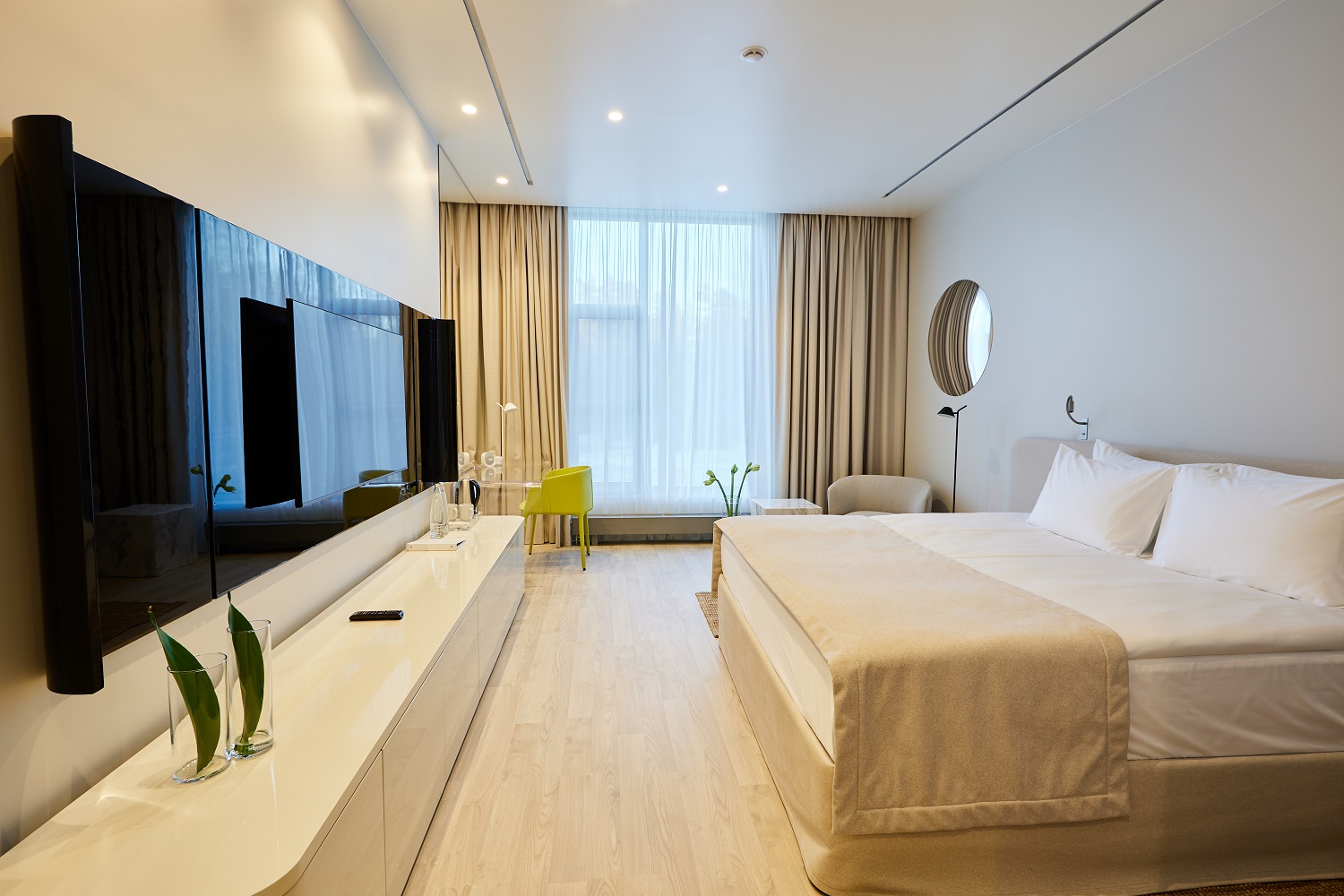 Оттенок Дуб Песочный идеально подходит для небольших комнат — такие молочные тона прекрасно расширяют пространство, добавляя комнате света и тепла.